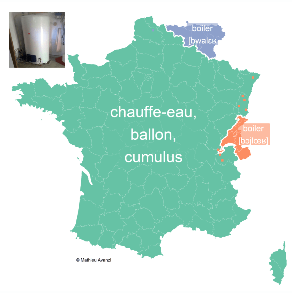 | La prononciation de boiler diffère selon les aires géographiques : [bɯalɛʀ] ou [bɔjlœʀ] en Belgique ; [bɔjlɛːʀ], [bɔjlʀ] ou [bœjl-] en Suisse ; [bɔjlœʀ] au Canada. 【该词在不同地方发音有所区别。】 | Chauffe-eau (l’équiv. du français de référence) s’emploie égal. en Belgique et au Canada, mais est inusité en Suisse. 【标准法语中的chauffe-eau,在比利时与加拿大地区仍通用,而在瑞士法语区却无人使用。】 |