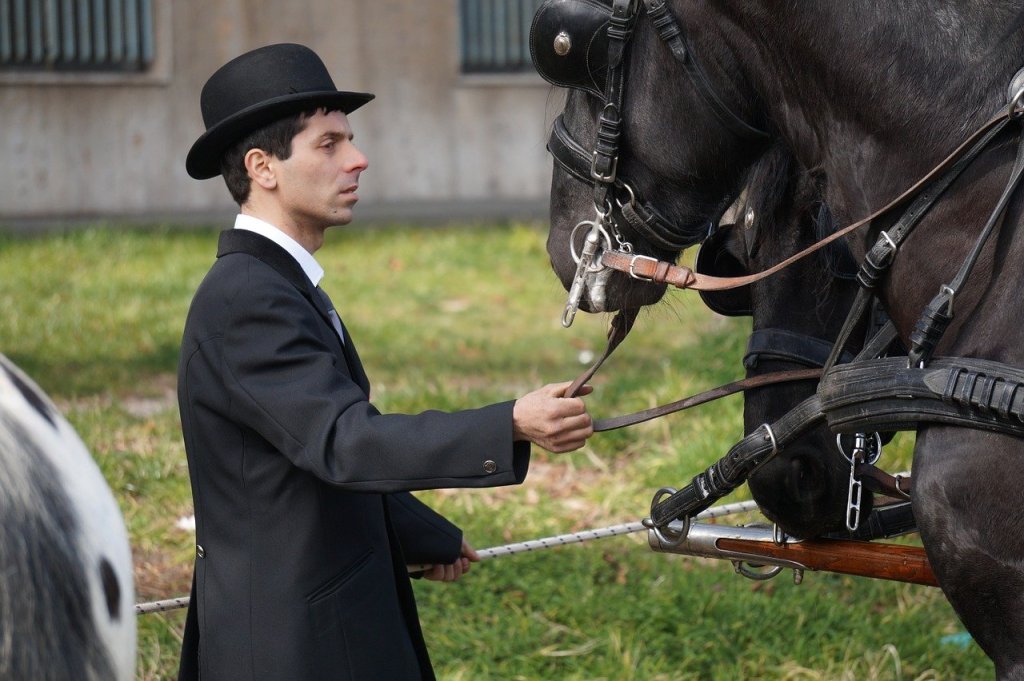 1) Belgique « Comme l’attestent des photographies d’époque, la tenue vestimentaire des personnages est bien respectée : les enseignants portent le chapeau haut[-]de[-]forme, les étudiants le chapeau[-]boule ou la penne, les palefreniers la casquette de toile. » [Mees 1986] 根据那个时代的照片来看,人们十分尊重当时的着装要求:教师戴着大礼帽,学生都戴着圆顶礼帽或是学生帽,而马夫则戴帆布鸭舌帽。