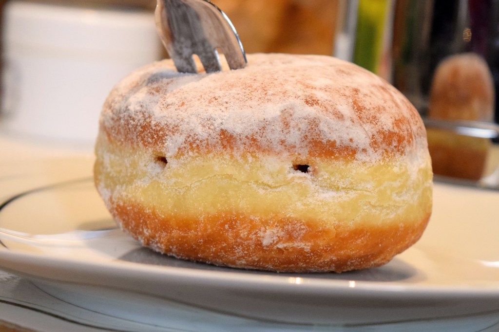 « Gros beignet fourré à la gelée, à la confiture ou à la crème pâtissière et enduit de sucre. » 柏林果酱包,个头较大,面包中带有果冻、果酱或者奶油,外层涂有糖霜。